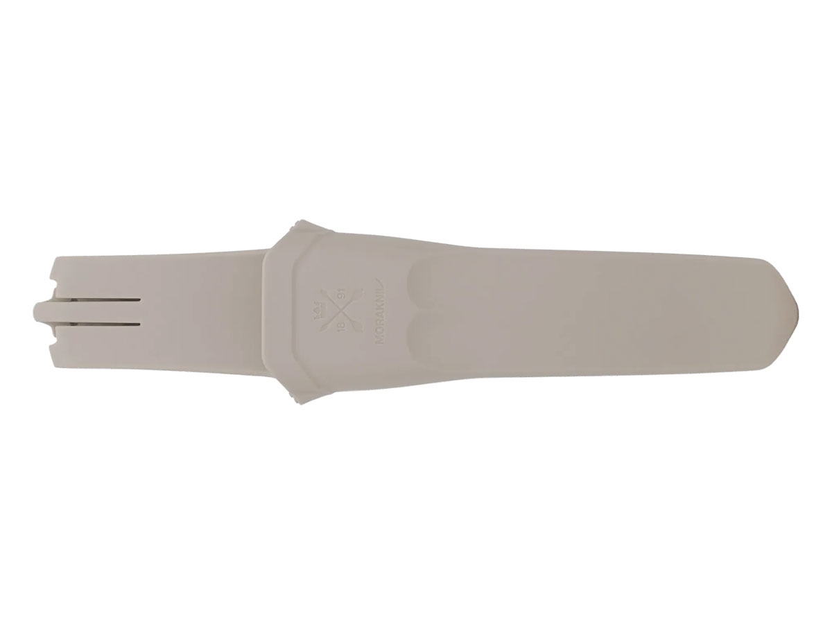 El mango ergonómico está fabricado íntegramente en polímero PP duradero que resiste la humedad, la suciedad y el frío. El protector de dedos proporciona mayor seguridad durante su uso, y el orificio para cordón en el extremo del mango facilita la sujeción de una cuerda o paracord. La funda cuenta con un práctico sistema de cierre a presión y puede llevarse tanto en el lado derecho como en el izquierdo. También puede sujetarse directamente al botón de tus pantalones de exterior.