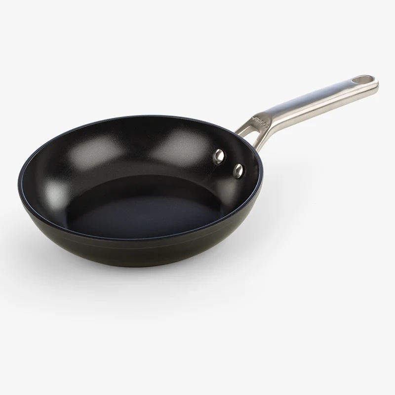 Su estructura de aluminio forjado no solo resiste el paso del tiempo, sino que optimiza el consumo de energía gracias a su sistema de inducción total. El mango ergonómico de acero inoxidable se mantiene frío al tacto y ofrece la robustez necesaria para el uso diario. Además, al no contener plásticos, puedes introducirla en el horno hasta 220ºC para dar el toque final a tus recetas.