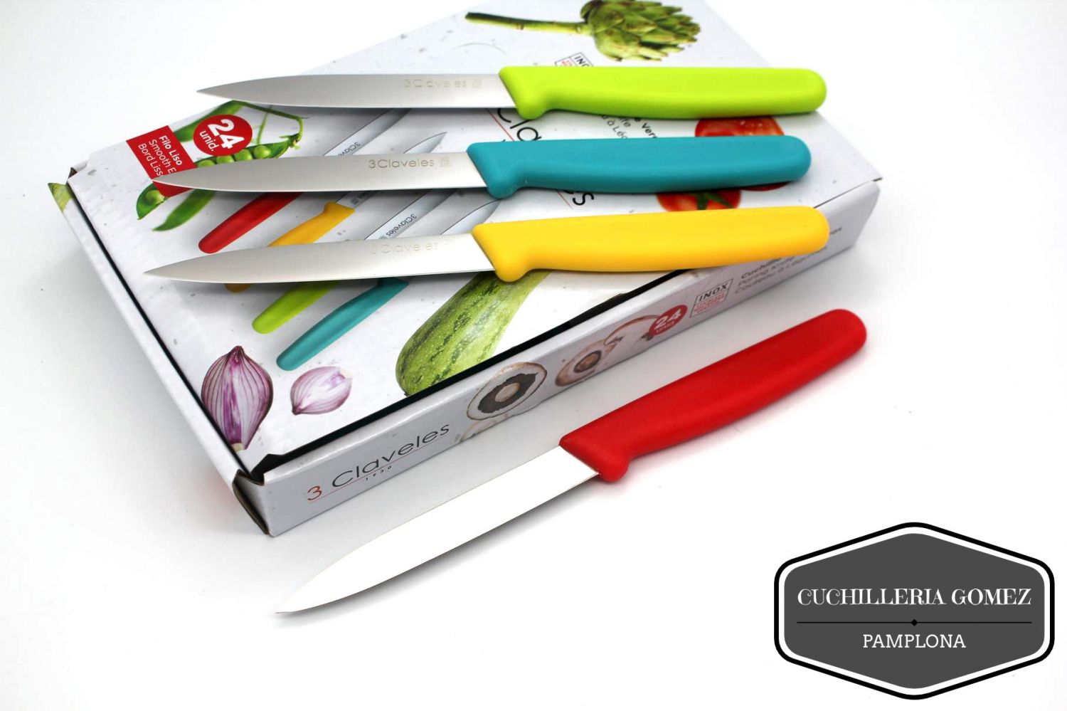 Cuchillo para verduras de la marca española 3 Claveles realizado en acero acero inoxidable con una longitud de 100mm y mango en fibra.
