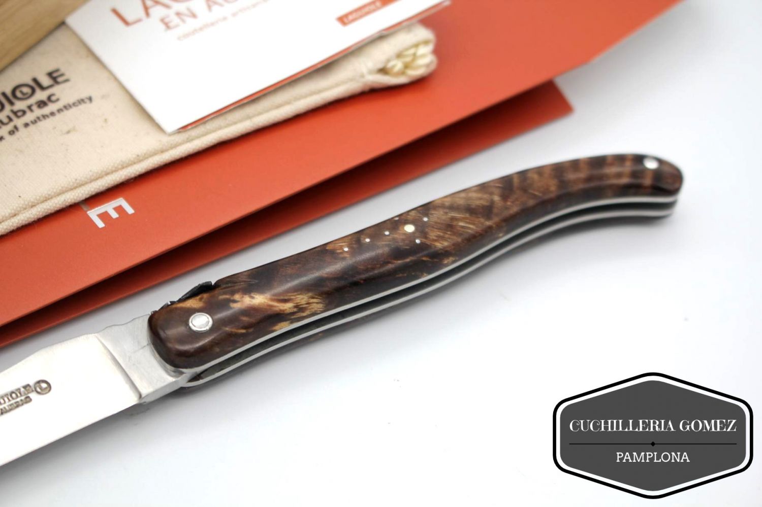 Marca Francesa Laguiole Aubrac, combina estética y practicidad, existe diferentes tipodes de aceros, inoxidable, de damasco o al carbono en las creaciones de Laguiole en Aubrac. Inalterable en el tiempo, ya sea brillante o cepillado, se integra perfectamente con todos los materiales clásicos o contemporáneos. Las palas, los resortes, los cabezales macizos son de diferentes materiales, y los clavos se fabrican en la fragua Laguiole en Aubrac .