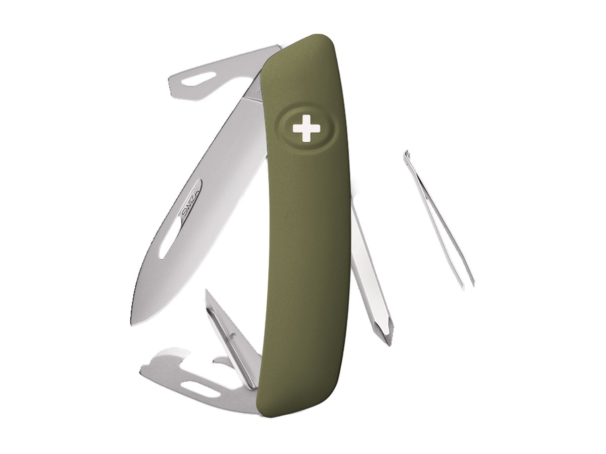 Navaja con la hoja es de acero inoxidable 440 con una dureza de 57 HRC. Se esconde dentro de un mango de 95 mm con cachas de agarre suave. Las cachas garantizan un agarre cómodo. La hoja del cuchillo se desliza fácilmente hacia fuera. Luego se oculta al liberar el seguro. Basta con pulsar el logotipo de Swiza.