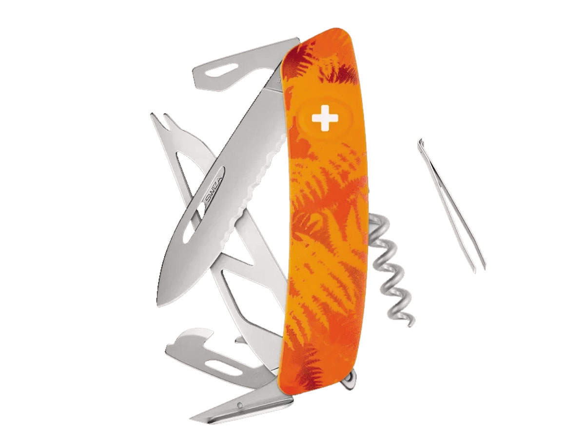 Navaja con la hoja es de acero inoxidable 440 con una dureza de 57 HRC. Se esconde dentro de un mango de 95 mm con cachas de agarre suave. Las cachas garantizan un agarre cómodo. La hoja del cuchillo se desliza fácilmente hacia fuera. Luego se oculta al liberar el seguro. Basta con pulsar el logotipo de Swiza.