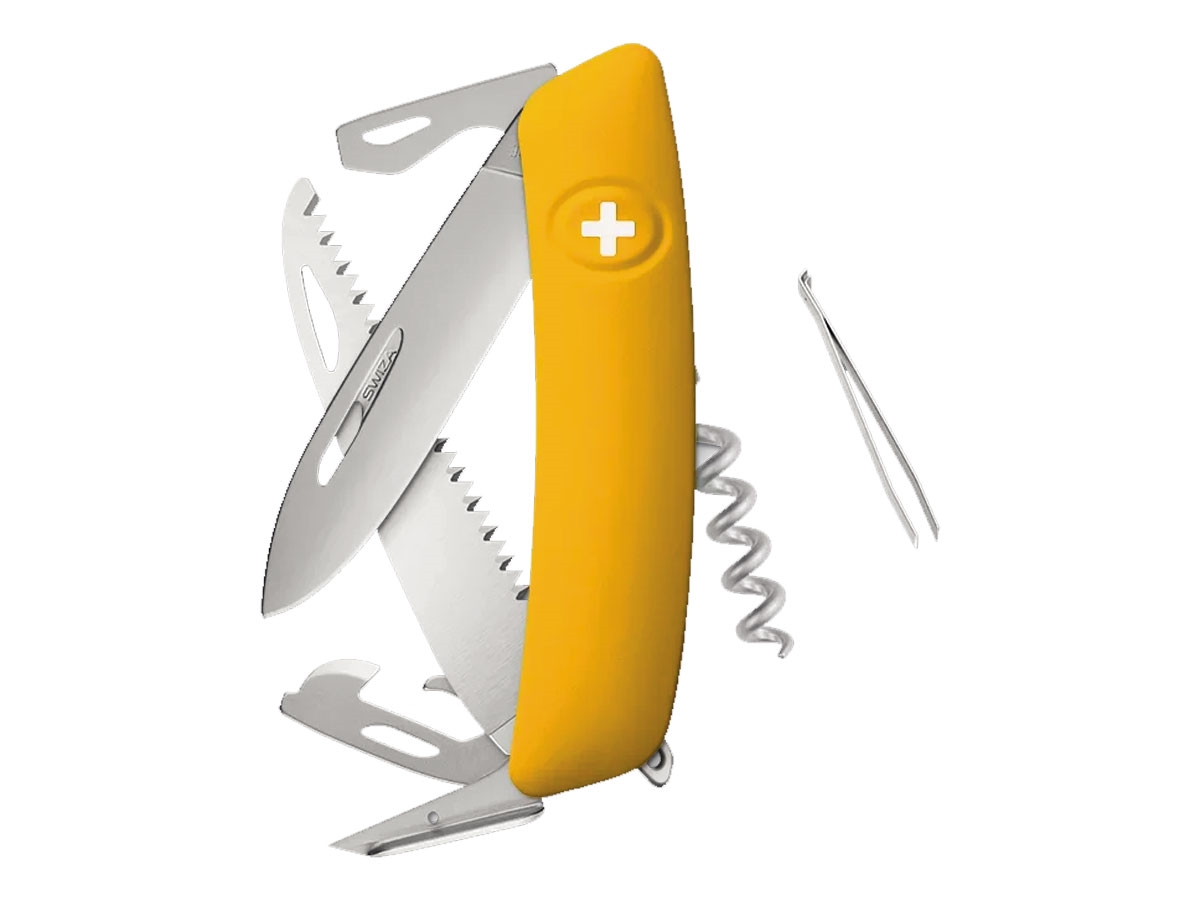 Navaja con la hoja es de acero inoxidable 440 con una dureza de 57 HRC. Se esconde dentro de un mango de 95 mm con cachas de agarre suave. Las cachas garantizan un agarre cómodo. La hoja del cuchillo se desliza fácilmente hacia fuera. Luego se oculta al liberar el seguro. Basta con pulsar el logotipo de Swiza.