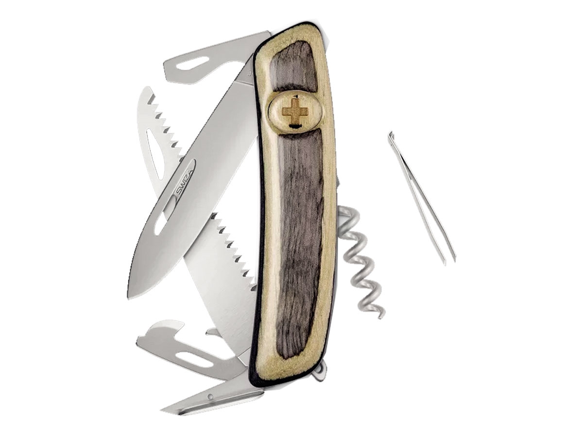 Navaja con la hoja es de acero inoxidable 440 con una dureza de 57 HRC. Se esconde dentro de un mango de 95 mm con cachas de madela laminada blanca. Las cachas garantizan un agarre cómodo. La hoja del cuchillo se desliza fácilmente hacia fuera. Luego se oculta al liberar el seguro. Basta con pulsar el logotipo de Swiza.