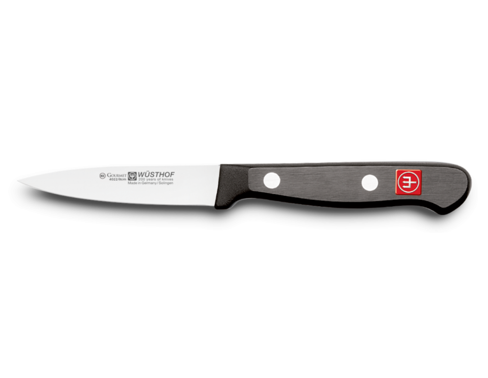El cuchillo pelador WÜSTHOF Gourmet, excepcionalmente liviano, estampado con láser a partir de una sola pieza de acero WÜSTHOF resistente a las manchas y con alto contenido de carbono, es el complemento ideal para cualquier cocina.