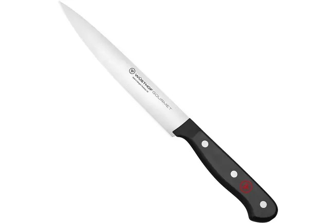 El cuchillo WÜSTHOF Gourmet, excepcionalmente liviano, estampado con láser a partir de una sola pieza de acero WÜSTHOF resistente a las manchas y con alto contenido de carbono, es el complemento ideal para cualquier cocina.