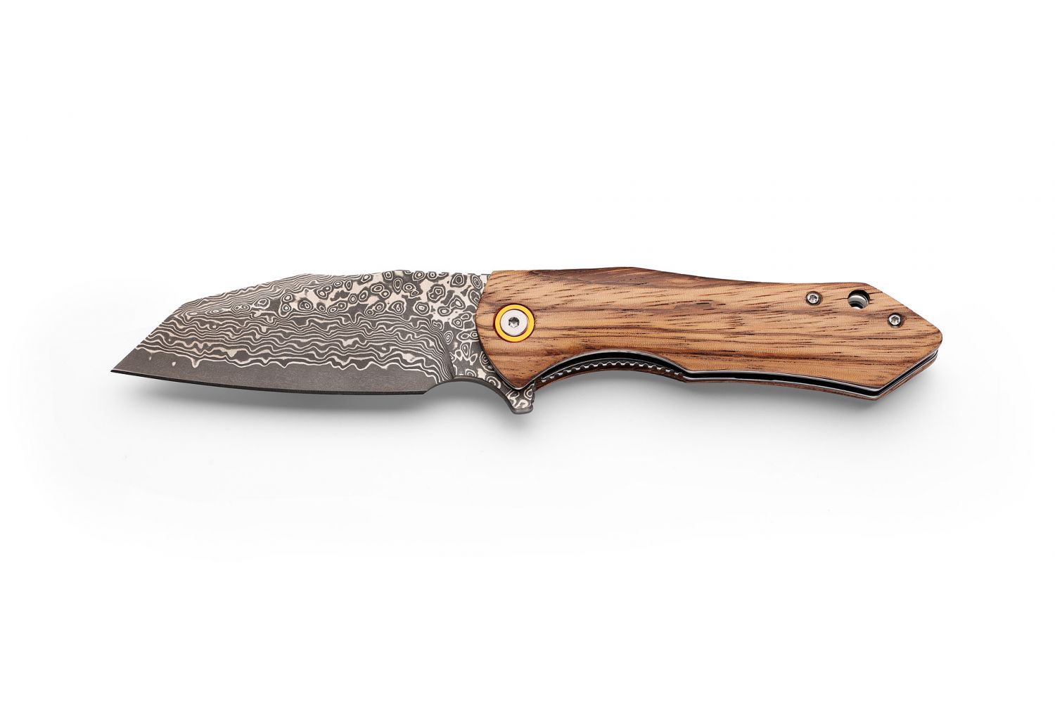 Hoja / Blade: 90 mm.Acero / Stainless Steel: VG-10 67 CAPASMango / Handle: 112 mm.Materia del mango: Madera de zembrano