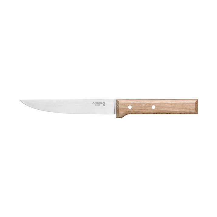La haya es la madera más utilizada para hacer mangos Opinel. Procedente de granjas francesas, es duro, resistente y fácil de trabajar. De aspecto homogéneo, su color claro varía de amarillo a rosa. Es reconocible por la presencia de muchos pequeños trazos oscuros. El mango está barnizado para estar mejor protegido contra la humedad y la suciedad.